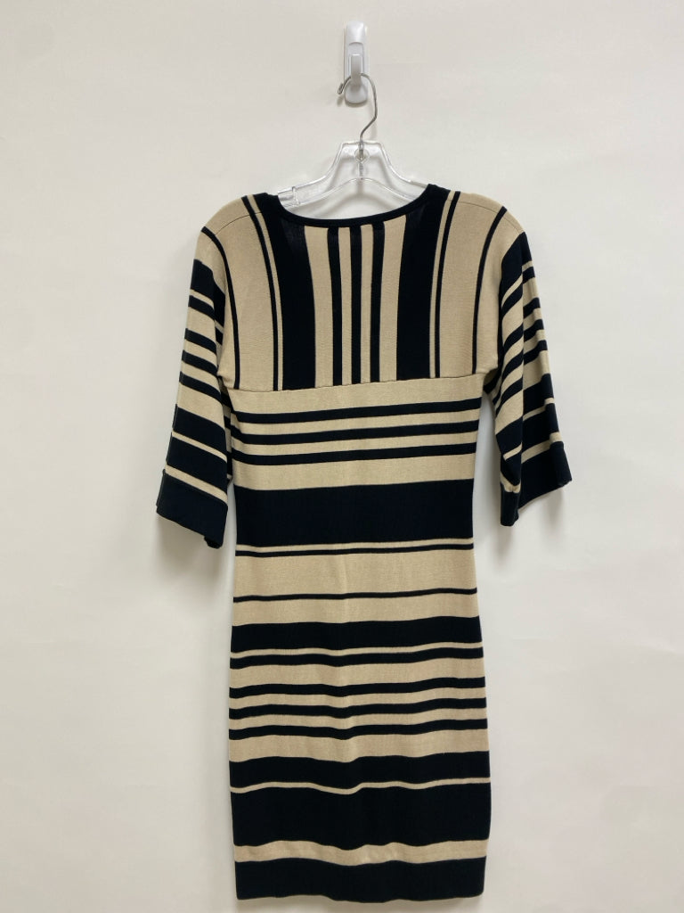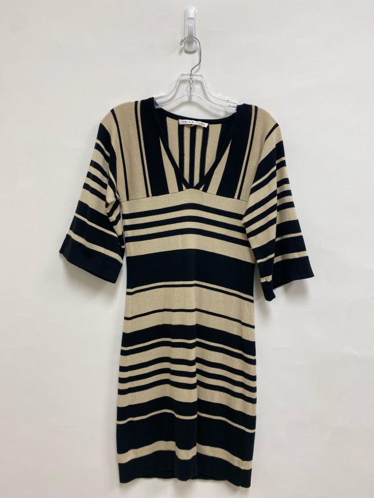 Trina Turk Size S Beige Black Striped V Neck Knit Ladies Dress