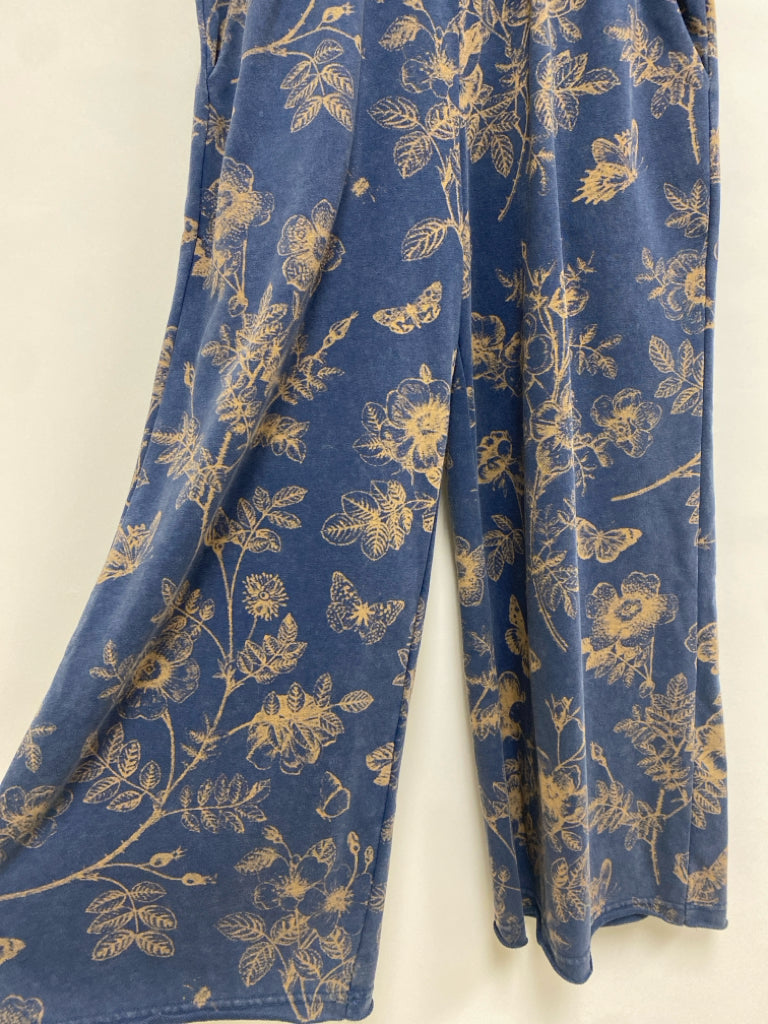 Umgee Size S Dark Blue Tan Flowers Wide Leg Ladies Sweatpant