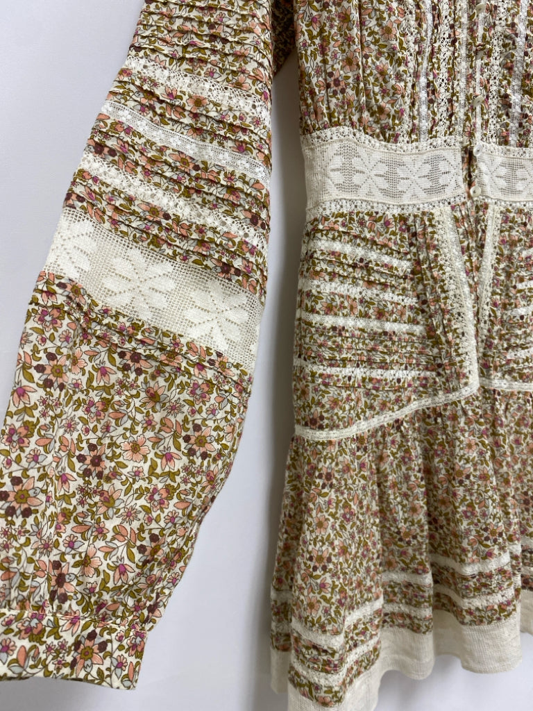 VERONICA BEARD Size 2 Cream/Green Peach/Blue Floral V Neck Ladies Dress