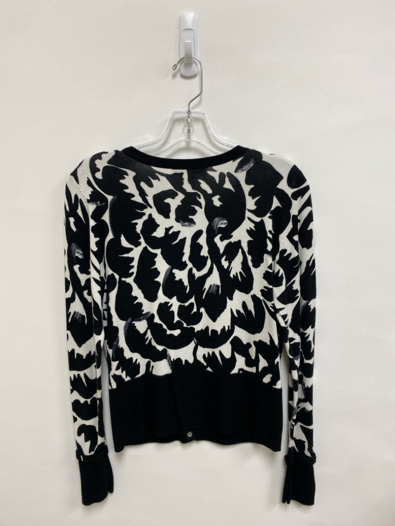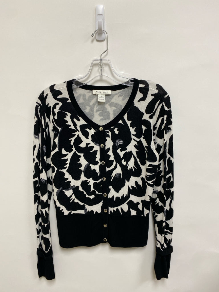Wht House/Blk Mkt Size M Black White Floral Button Up Ladies Sweater