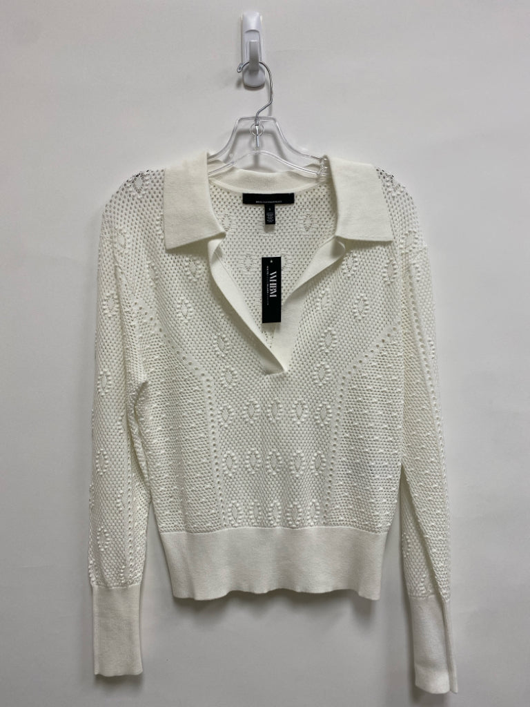 Wht House/Blk Mkt Size S White Perforated V Neck Ladies Sweater