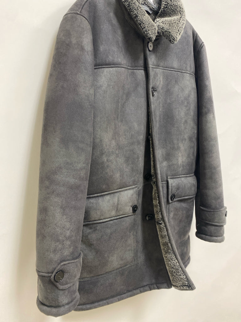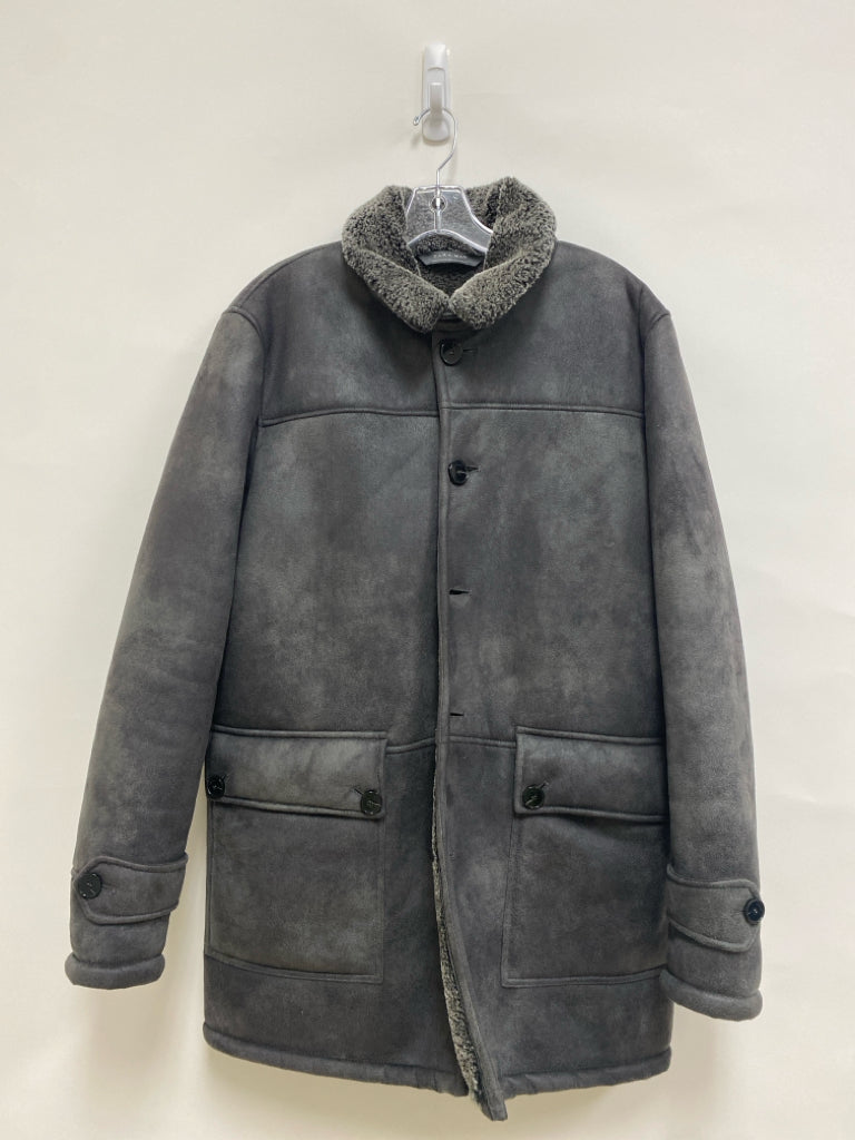 Zara Size XL Dark Gray Button Up Faux Fur Collar Men's Coat