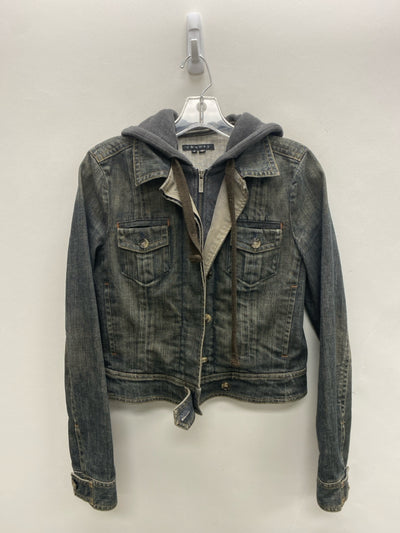 Theory Size M Gray Tan/Brown Hooded Denim Ladies Jacket