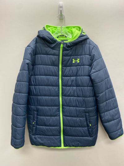 Under Armour SIZE 14/16 Slate Blue Neon Green Puffer Hooded Boy's Coat