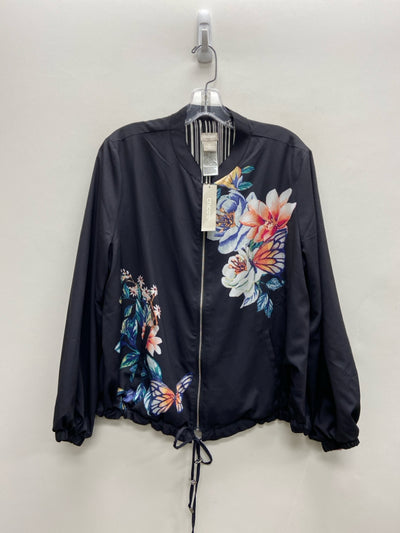 Chico's Size 2P Black Multi Color Flowers Zip Down Petite Jacket