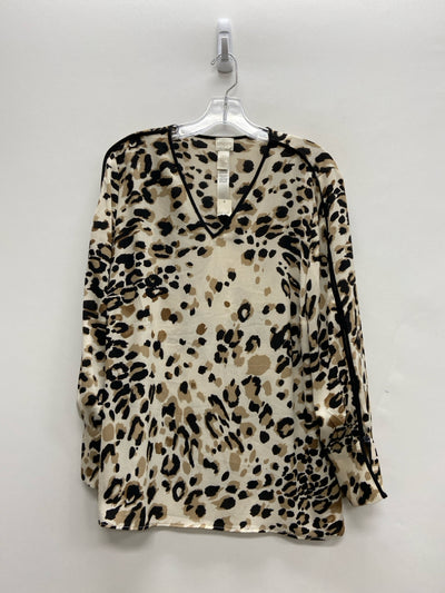 Chico's Size 2P Beige Black/Tan Animal Print V Neck Petite Top
