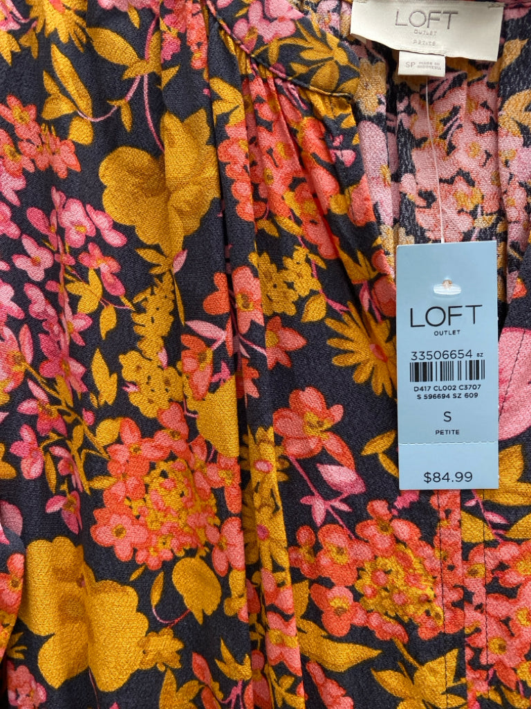 LOFT Size SP Navy Coral/Orange Flowers Petite Dress