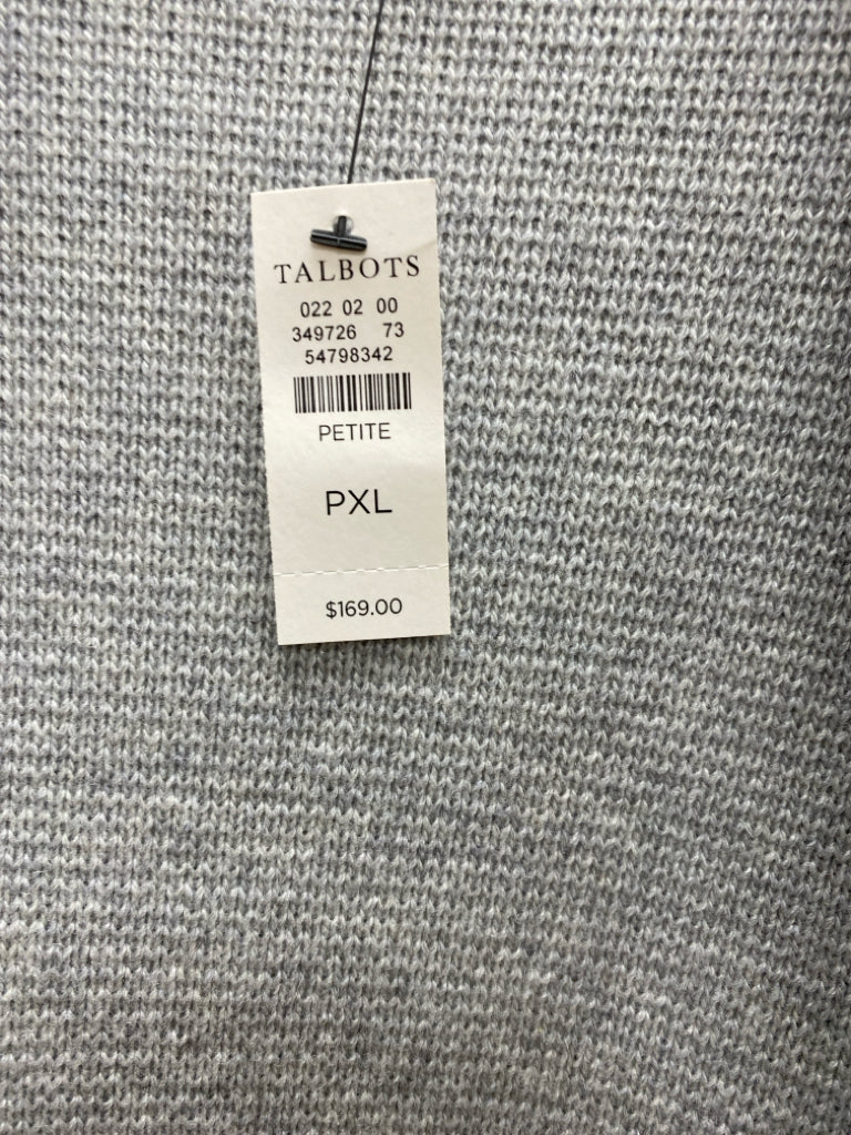 [{"id":41781234991207,"title":"Gray \/ XLP","option1":"Gray","option2":"XLP","option3":null,"sku":"3209-6420","requires_shipping":true,"taxable":true,"featured_image":null,"available":true,"name":"Talbots Size XLP Gray Drape Petite Sweater - Gray \/ XLP","public_title":"Gray \/ XLP","options":["Gray","XLP"],"price":2300,"weight":907,"compare_at_price":4600,"inventory_management":"shopify","barcode":"03954045","requires_selling_plan":false,"selling_plan_allocations":[]}]