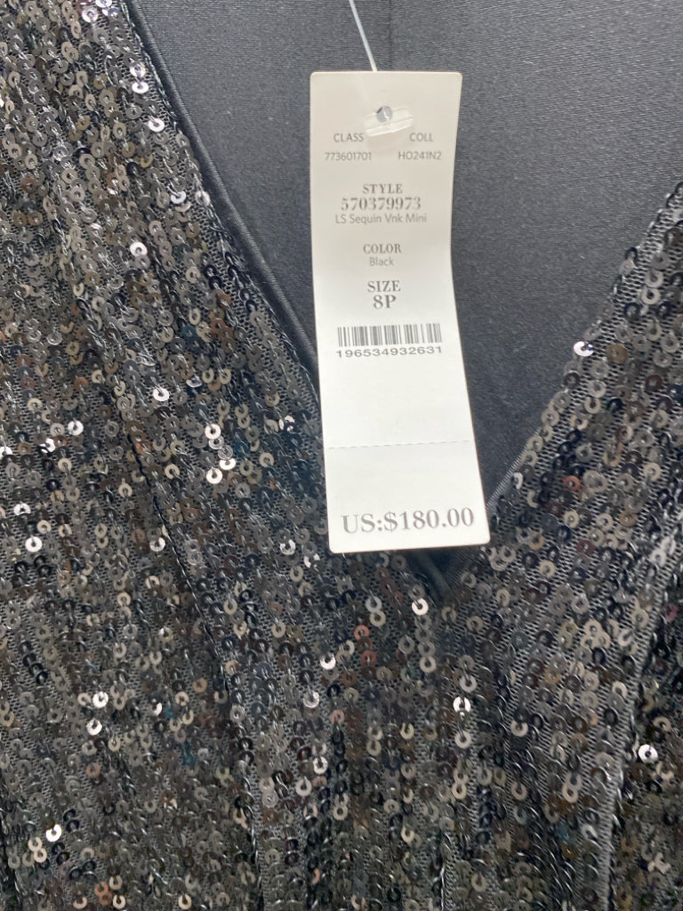 Wht House/Blk Mkt Size 8P Black Sequins V Neck Petite Dress
