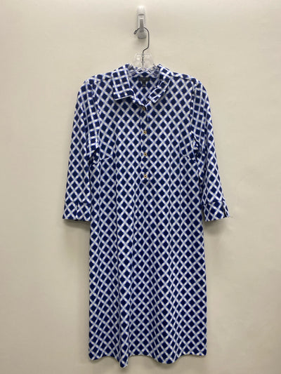 Talbots Size MP White/Navy Periwinkle Circles Quarter Button Petite Dress