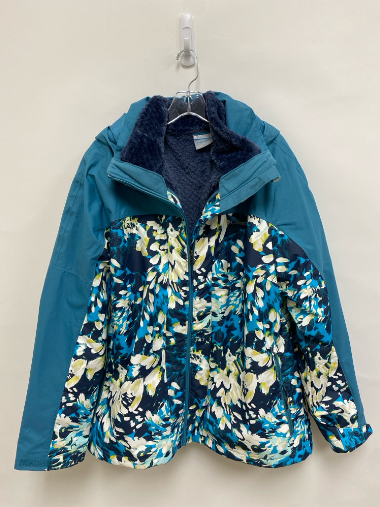 Columbia SIZE XXL Blue White/Yellow Flowers Zip Down Hooded Plus Size Coat