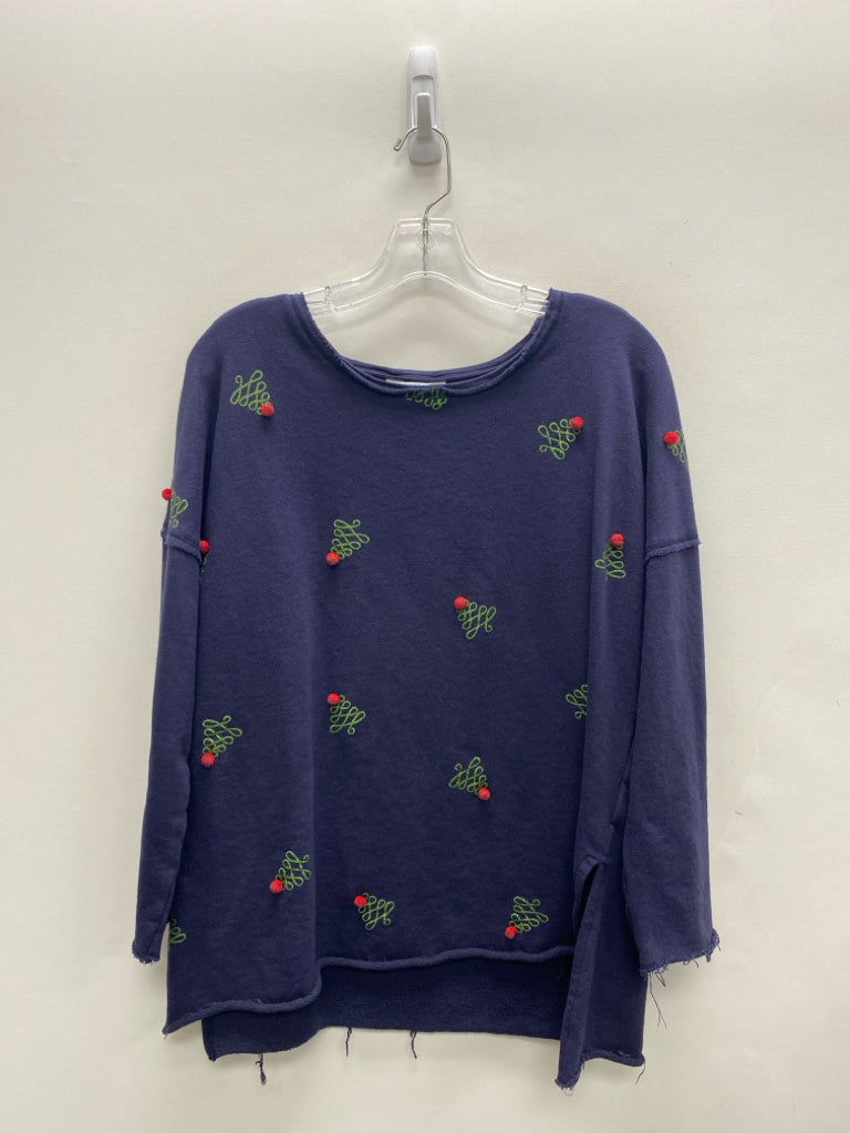 Crown & Ivy SIZE 0X Navy Green/Red Pom Poms Plus Size Top