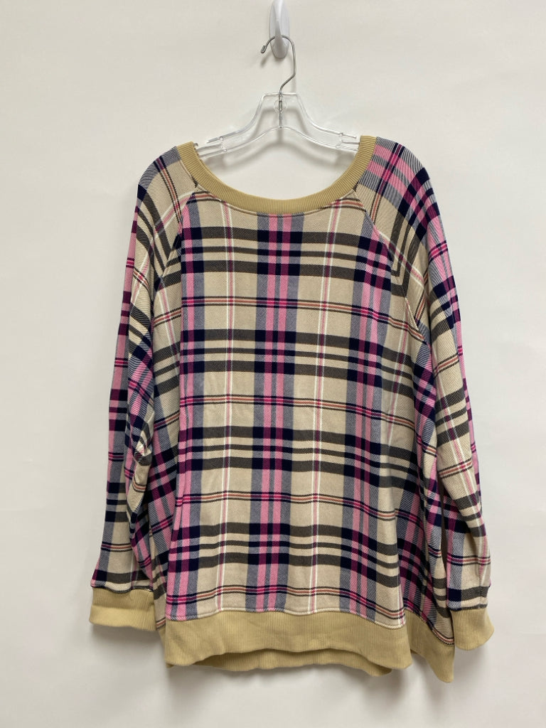 Crown & Ivy SIZE 3X Beige Pink/Navy Plaid Plus Size Sweatshirt
