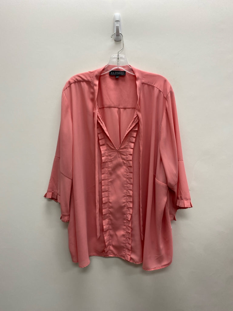 ELOQUII SIZE 28 Pink Ruffles V Neck Plus Size Top