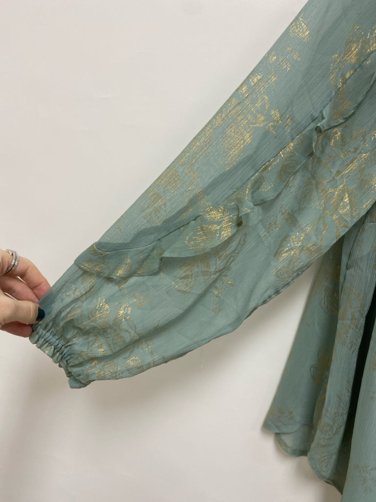Lauren Conrad SIZE 0X Seafoam Gold Roses Plus Size Top