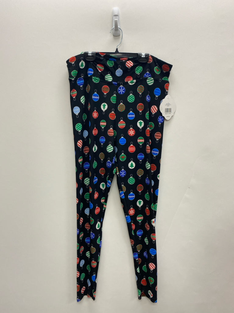 SIZE 1X Black Green/Multi Ornaments Plus Size Leggings