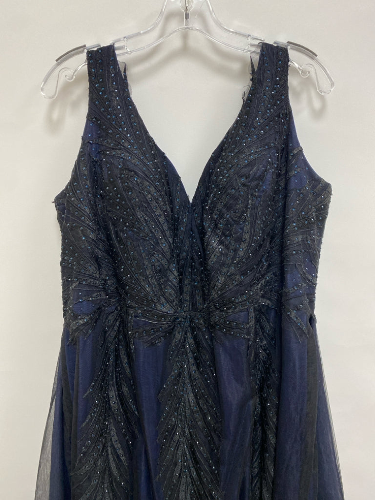 SIZE 24 Black/Blue Lace Sleeveless Plus Size Formal**Possibly Altered