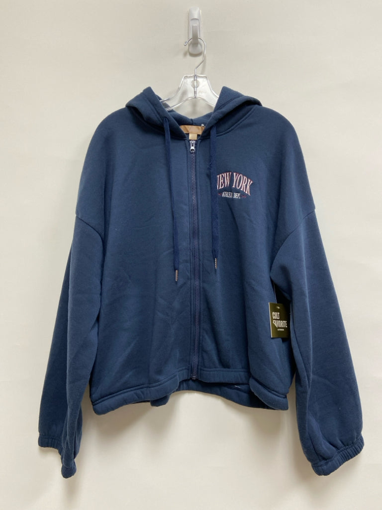 SIZE 3X Navy White Zip Down Hooded Plus Size Athletic Jacket