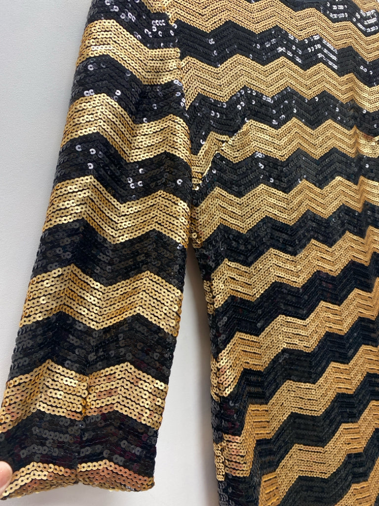 Gianni Bini Size L Black Gold Sequins Ladies Formal Dress