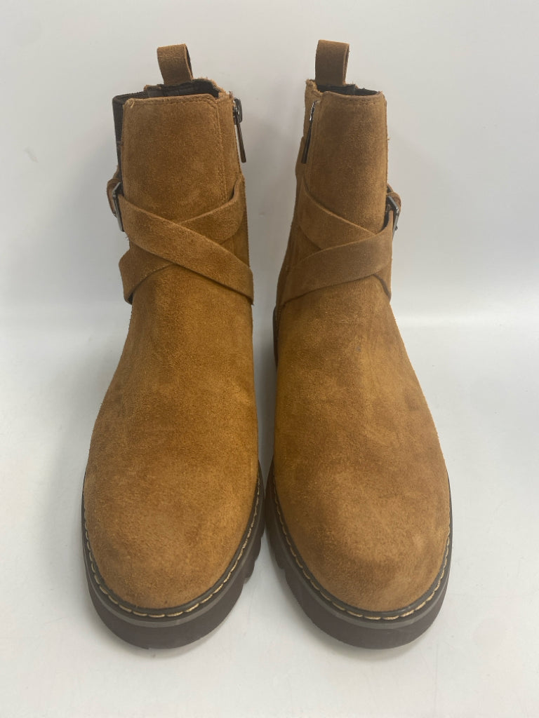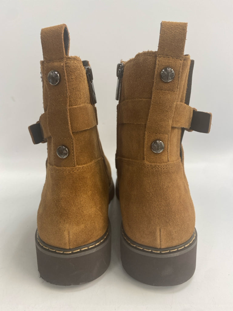 Donald Pliner Size 8.5 Camel Side Zipper Suede Boots