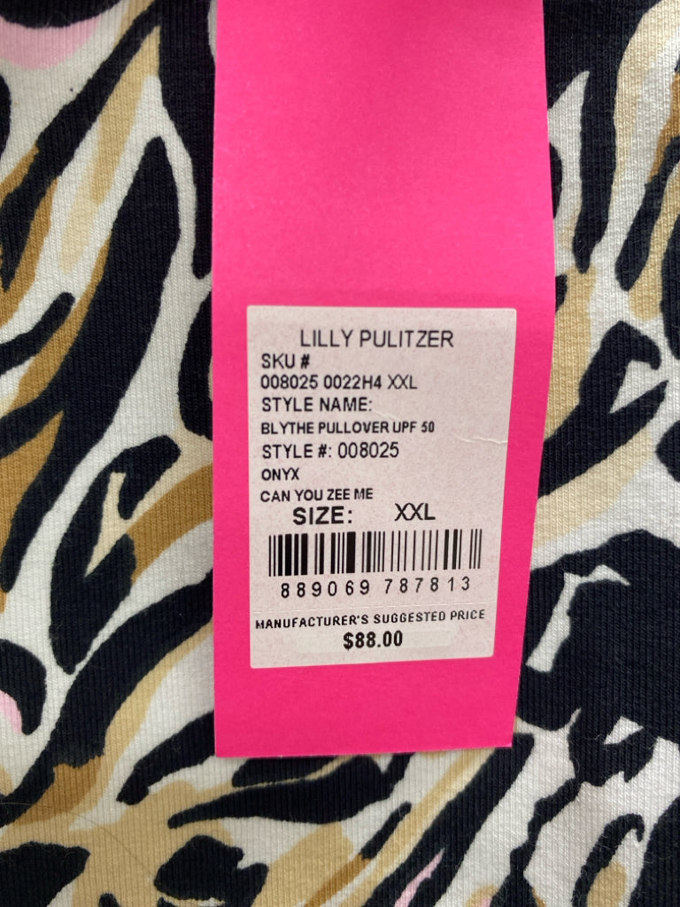 LILLY PULITZER SIZE XXL Black/White Tan/Pink Zebra Print Plus Size Top