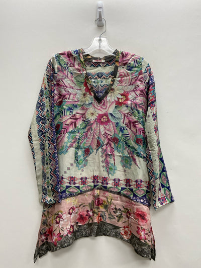 JOHNNY WAS Size XS Gray Multi Color Assorted Print Tunic Silk Ladies Top