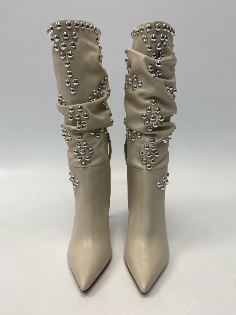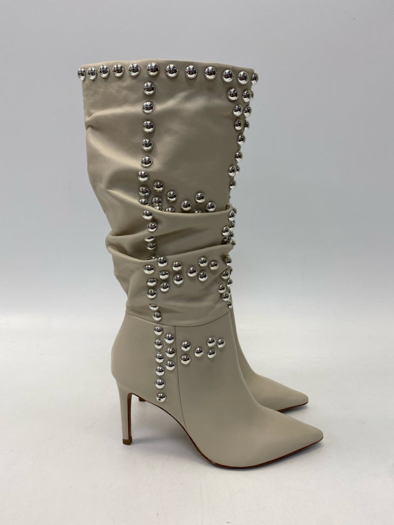 BCBG Size 7 Beige Silver Studded Boots