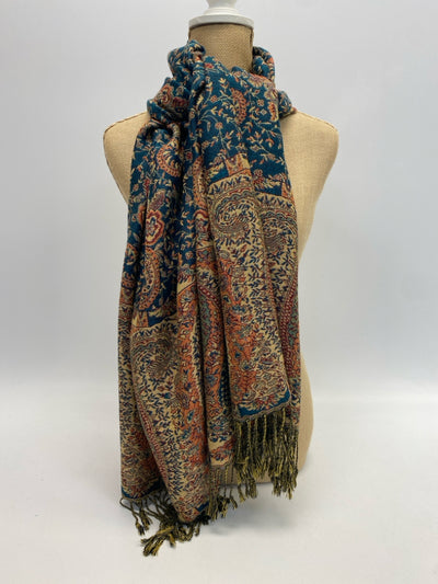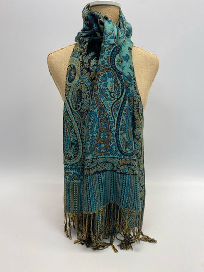 Pashmina Turquoise Gold Print Scarf