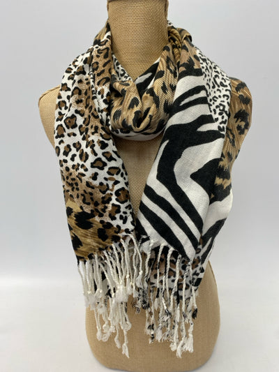 White Black/Brown Animal Print Scarf