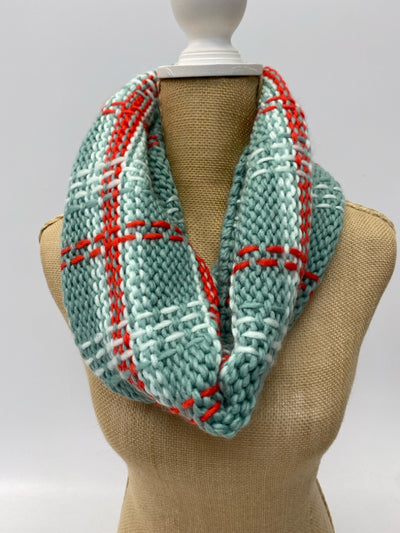 Aerie Seafoam Coral/White Crochet Winter Scarf