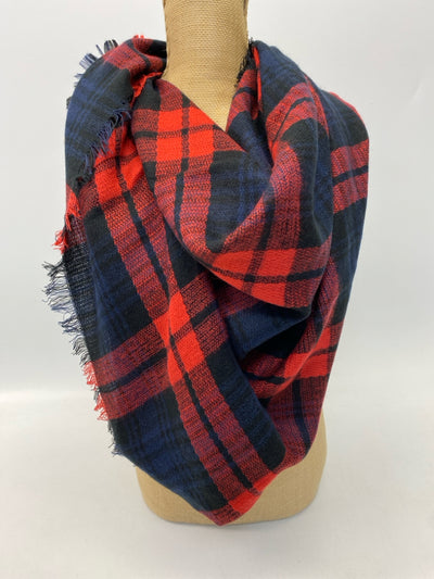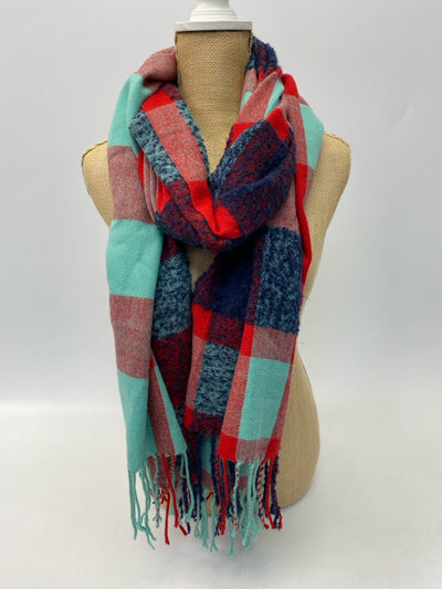 Lands End Red/Blue Aqua Checkered Winter Scarf