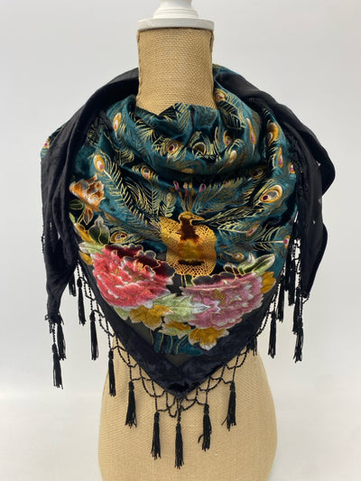 Black Teal Green Peacock Scarf