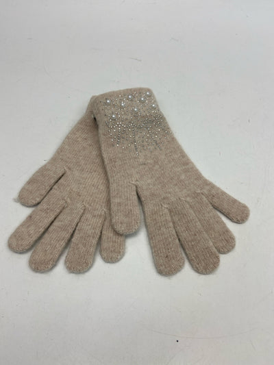 Beige Beaded Winter Gloves