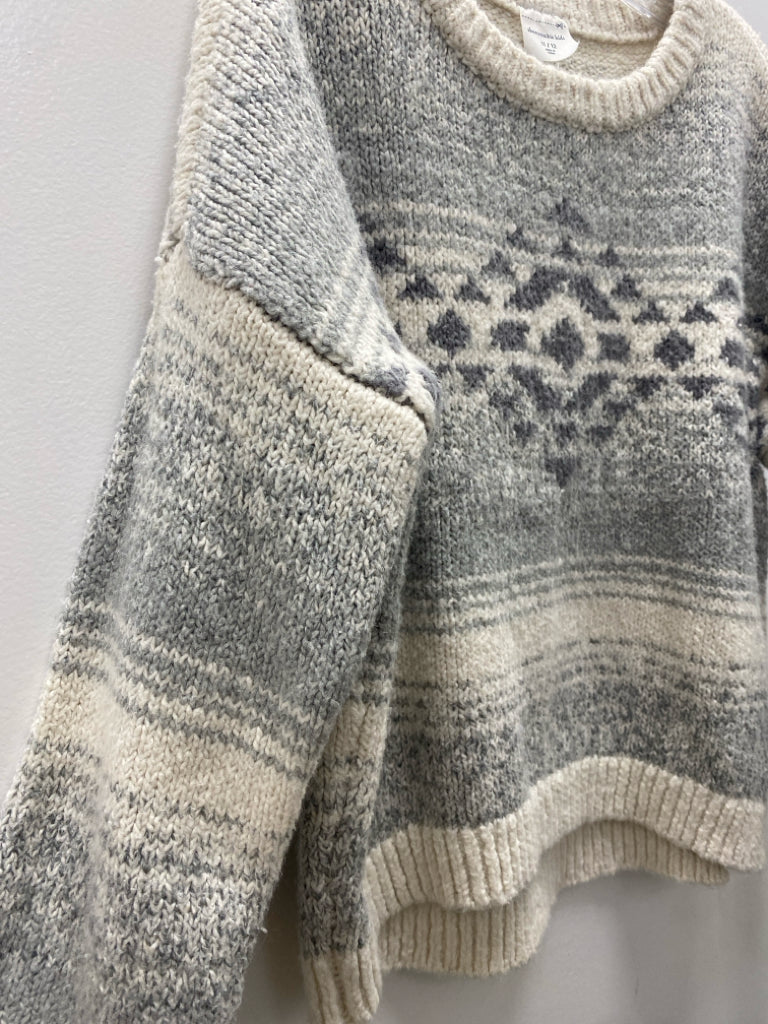 Abercrombie Kids SIZE 11/12 White/Gray Assorted Print Cropped Girl's Sweater