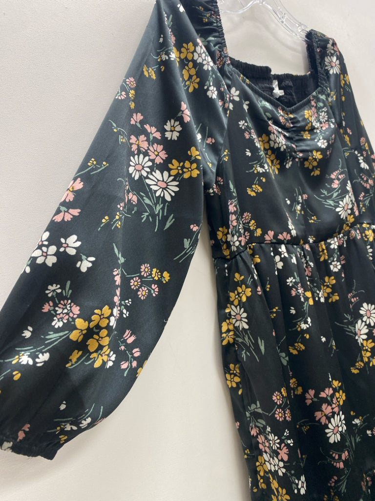 Abercrombie Kids SIZE 13/14 Black/Gold Pink/White Flowers Satin Girl's Dress