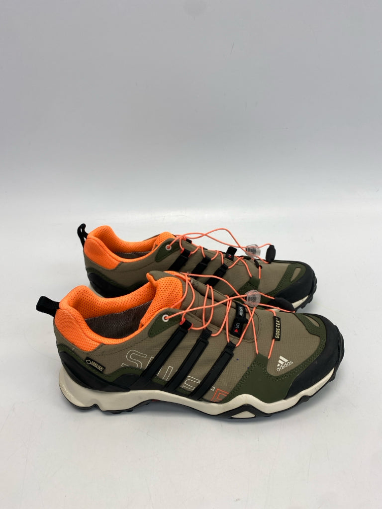 Adidas Size 9.5 Olive Green Neon Orange Lace-Up Men's Sneakers