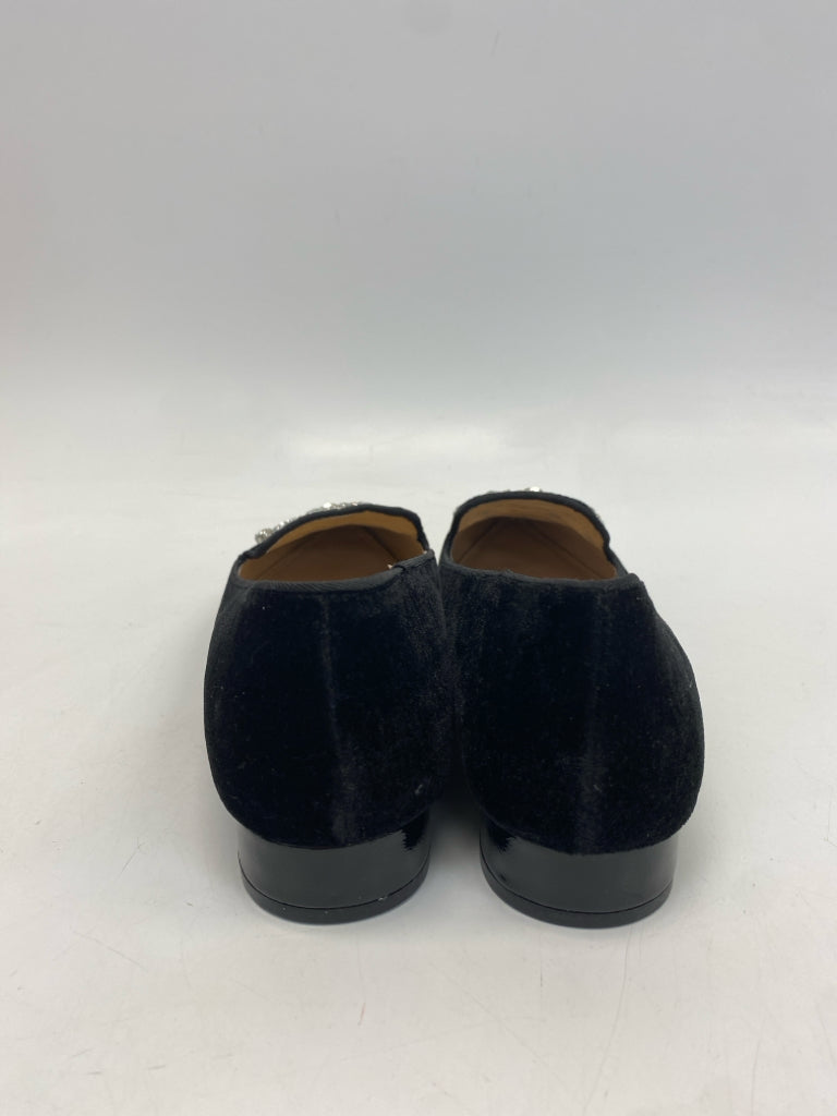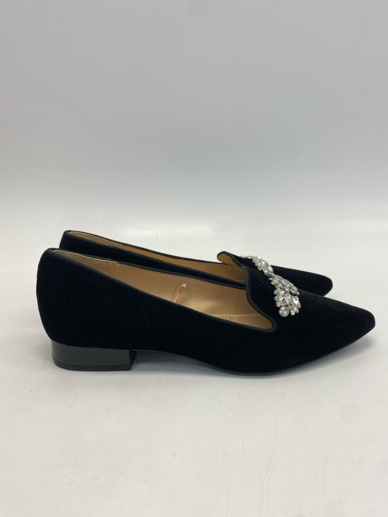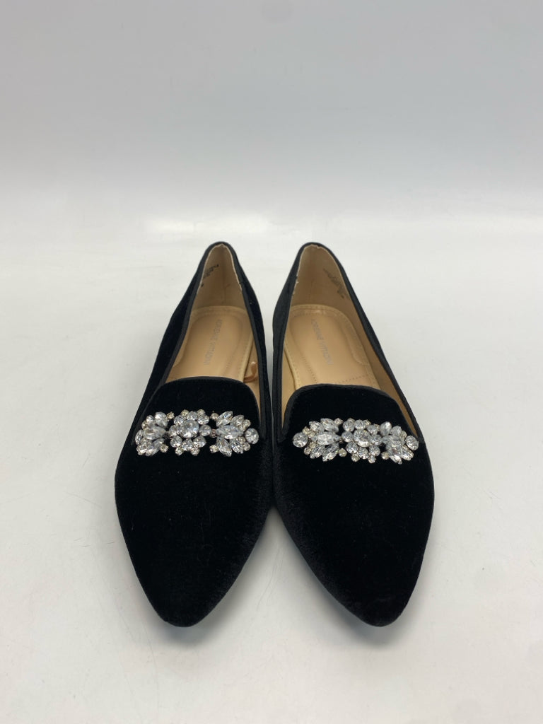 ADRIENNE VITTADINI Size 9.5 Black Clear Rhinestone(s) Velvet Flats