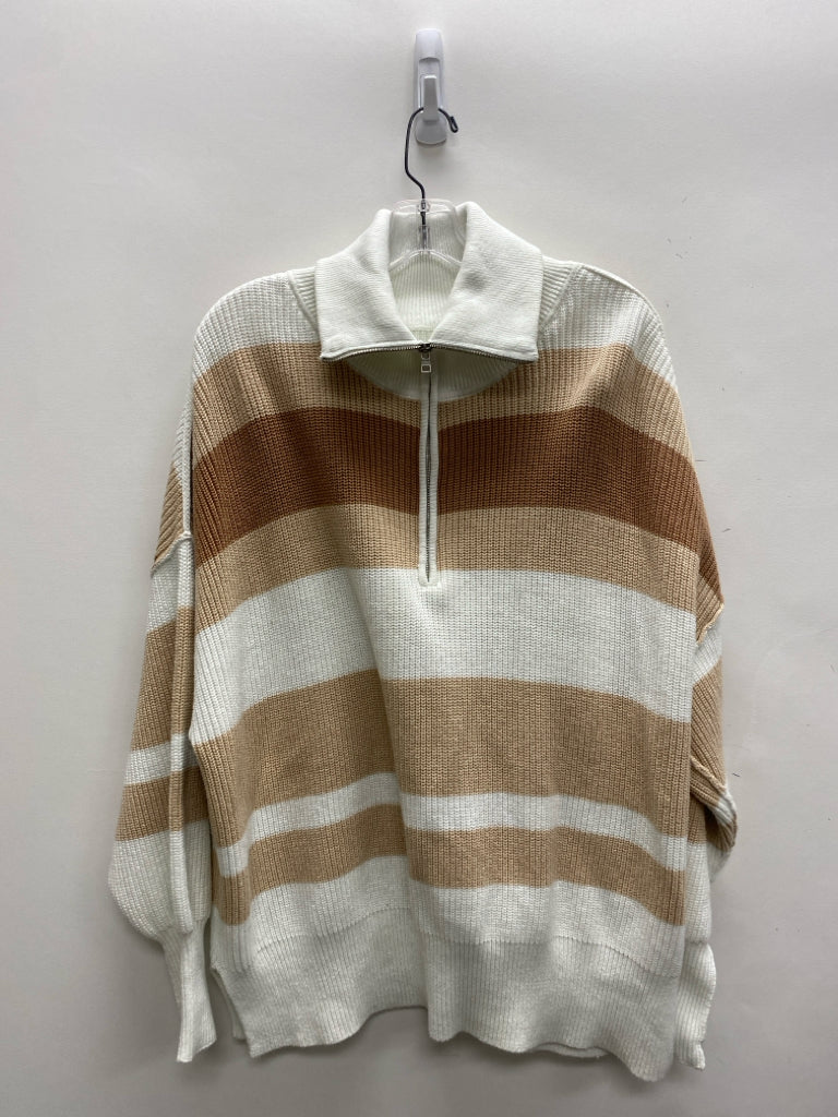Aerie Size M White Brown/Tan Stripes Quarter Zip Ladies Sweater