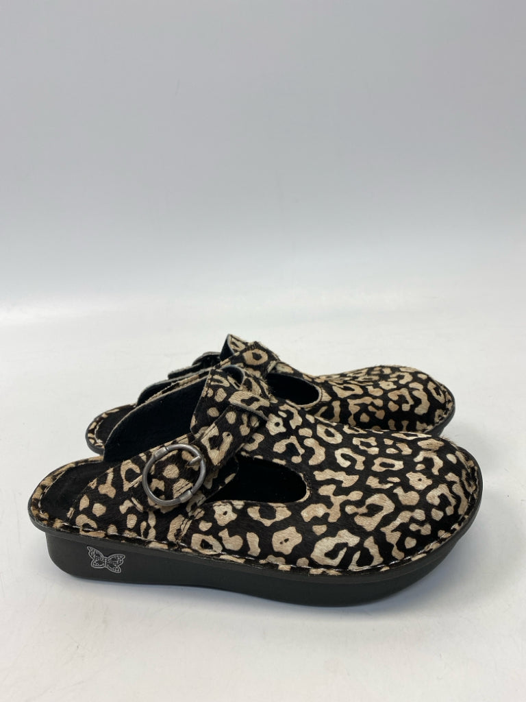 Alegria Size 37 Dark Brown Tan Animal Print Fur Clogs