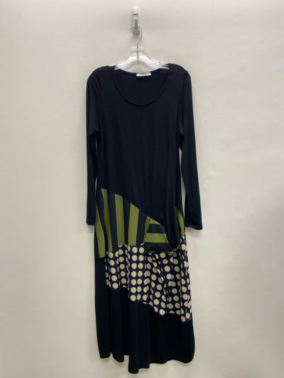 ALEMBIKA Size 2 Black/Green Beige Dots Maxi Ladies Dress