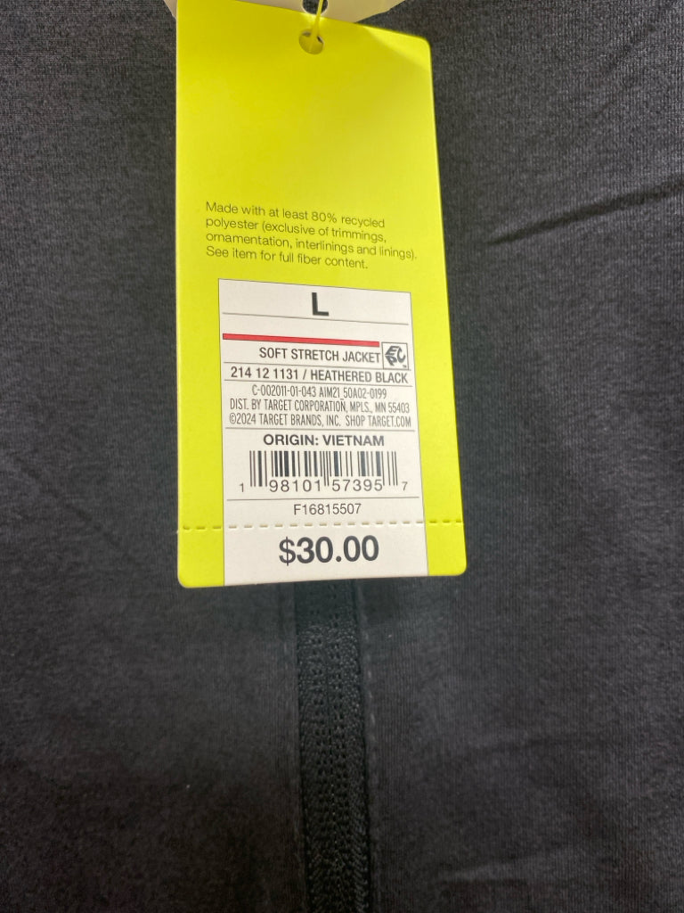 {"id":41751492558951,"title":"Black \/ L","option1":"Black","option2":"L","option3":null,"sku":"28220-56","requires_shipping":true,"taxable":true,"featured_image":null,"available":true,"name":"all in motion SIZE L Heather Black Zip Down Girl's Jacket - Black \/ L","public_title":"Black \/ L","options":["Black","L"],"price":1600,"weight":454,"compare_at_price":null,"inventory_management":"shopify","barcode":"03948669","requires_selling_plan":false,"selling_plan_allocations":[]}