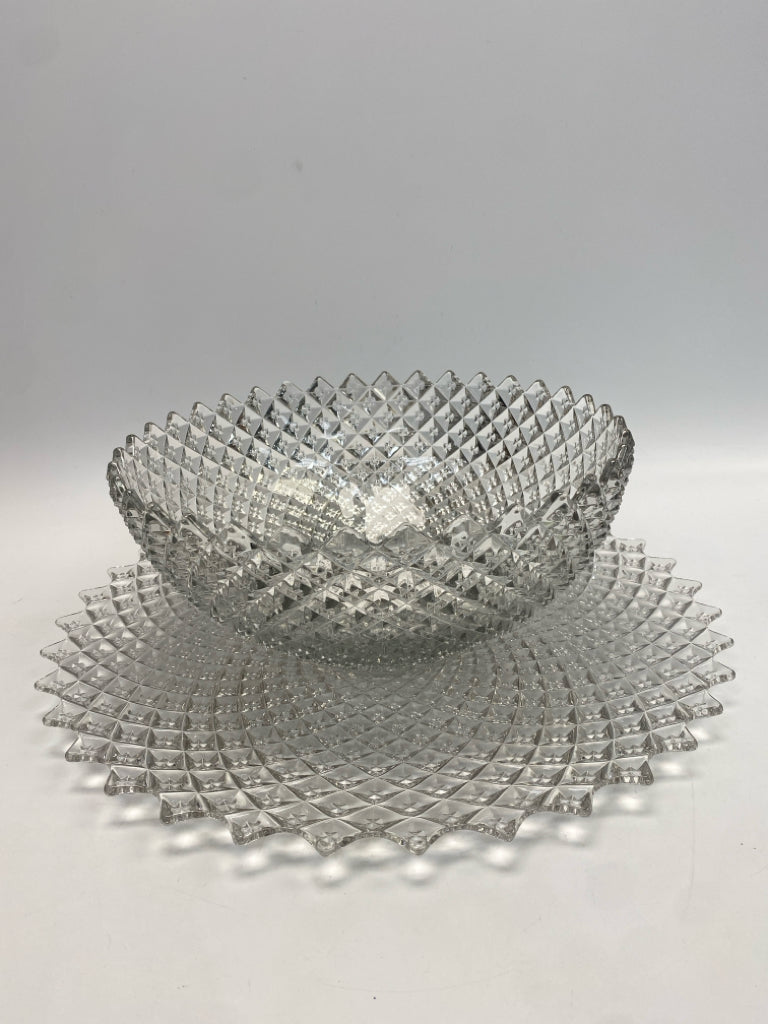 Anchor Hocking Clear Diamond Print Glass Serving Piece