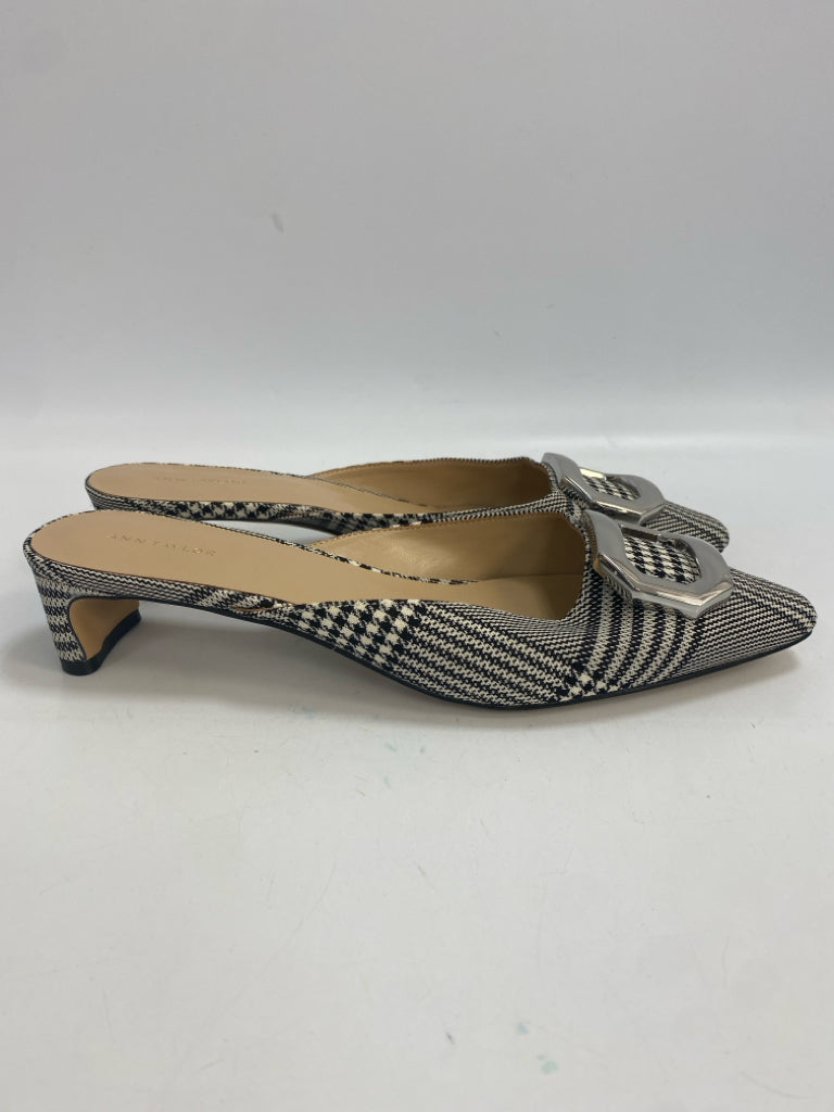 Ann Taylor Size 9 Black Cream Plaid Mules