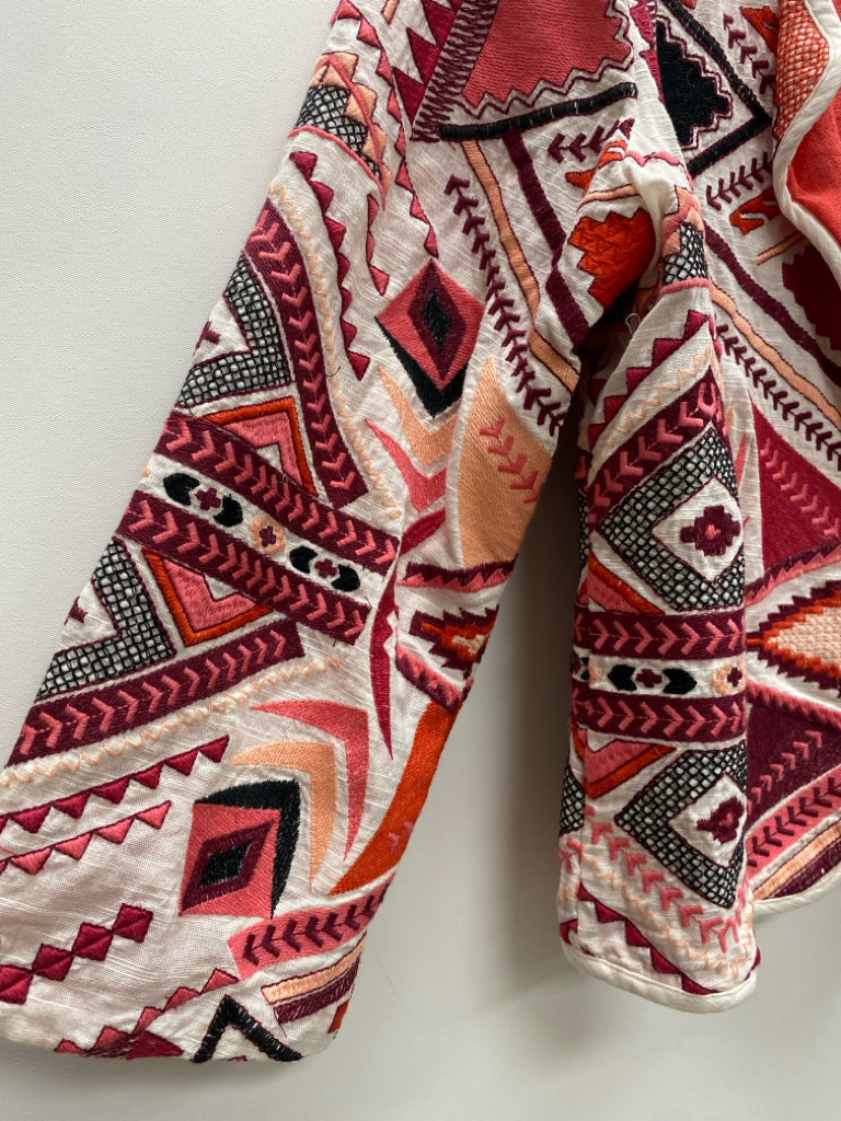 Anthropologie Size M White/Black Pink/Orange Southwestern Drape Ladies Jacket