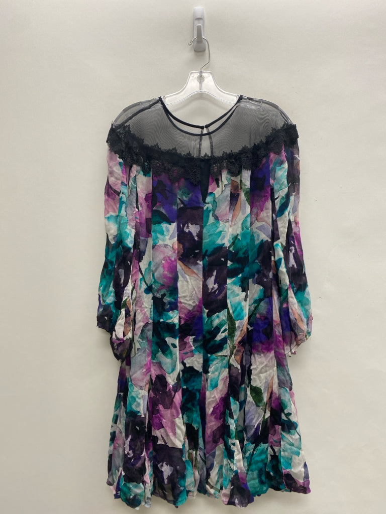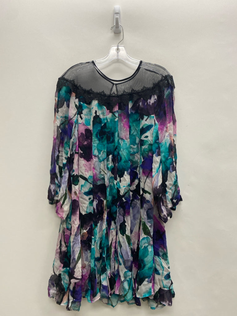 Anthropologie Size XL Black/White Purple/Aqua Abstract Sheer Ladies Dress