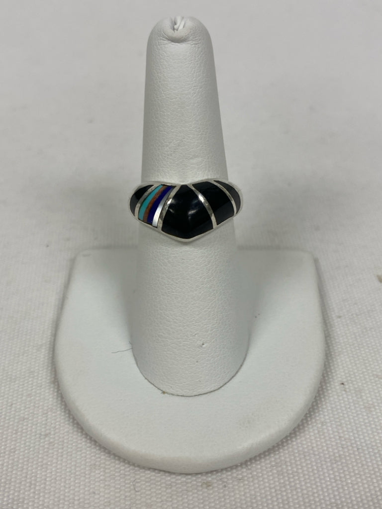 Black Silver/Multi Inlay Ring