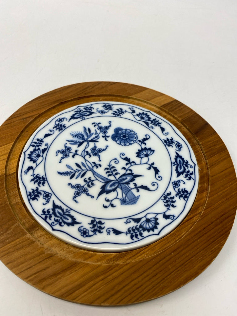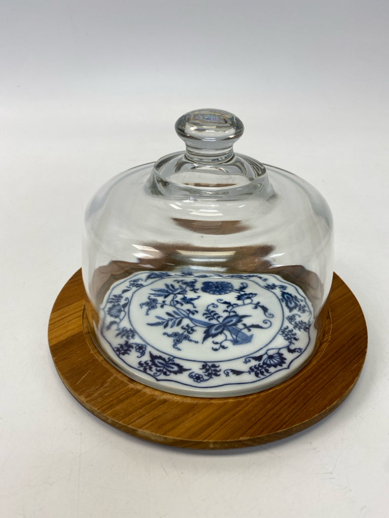Blue/White Clear Wood Ceramic/Glass Serving Piece