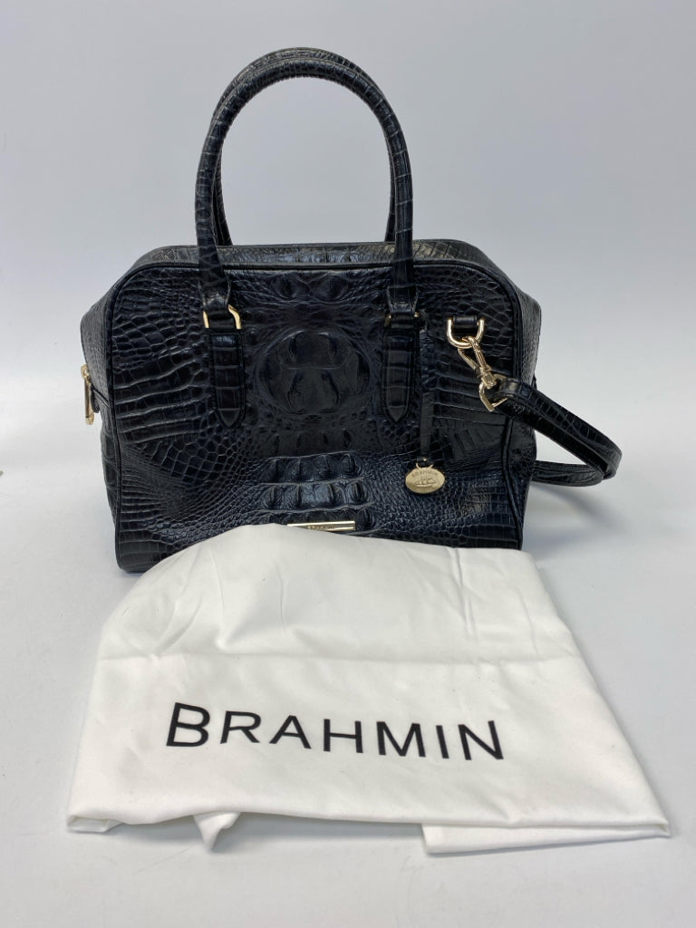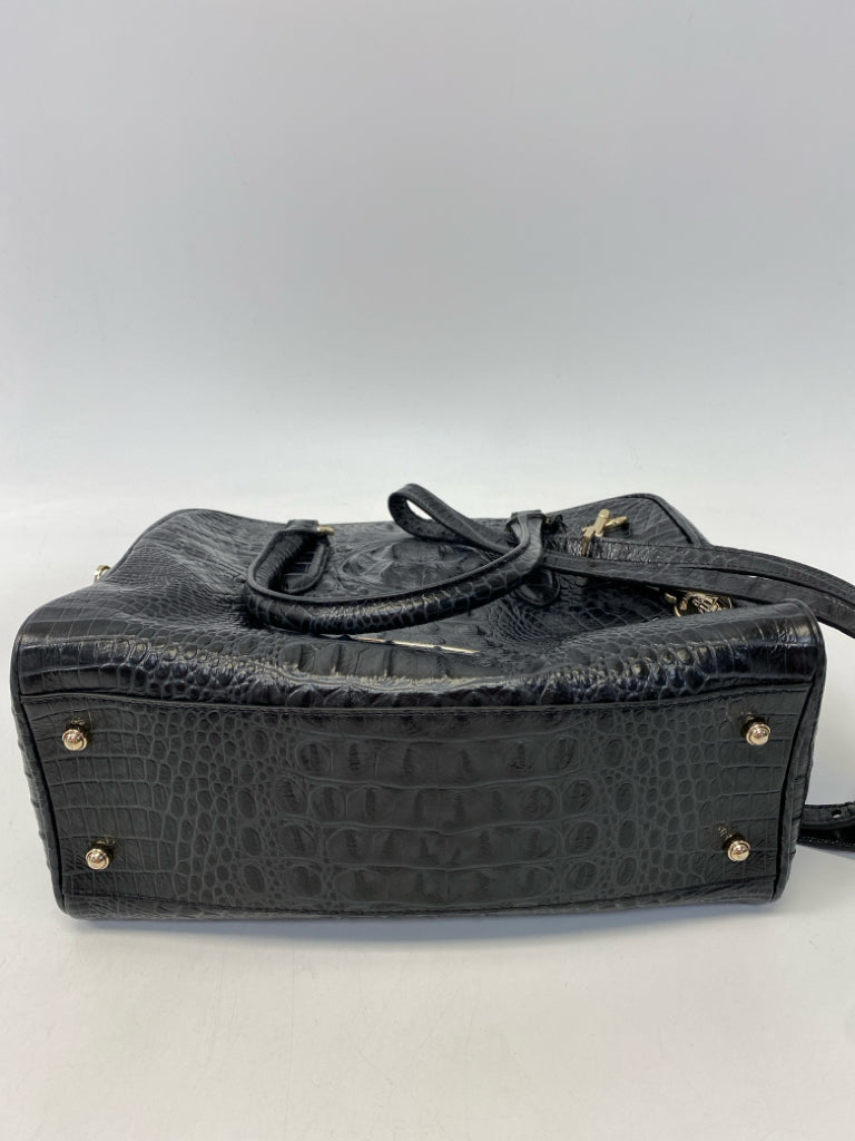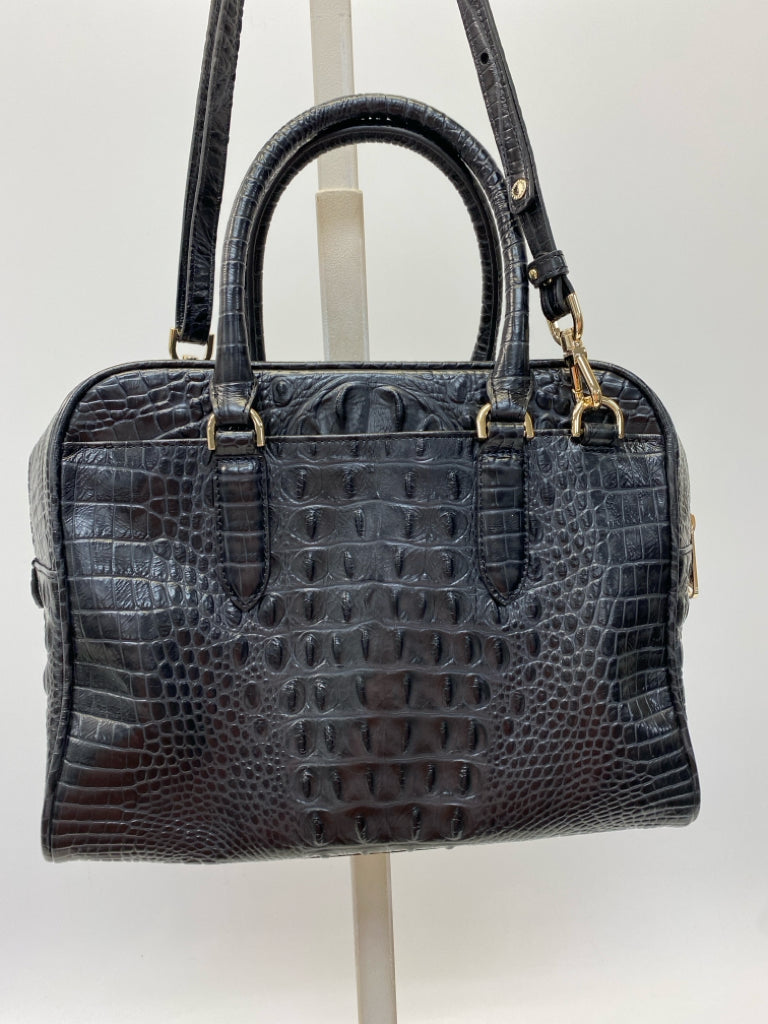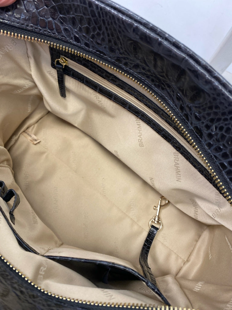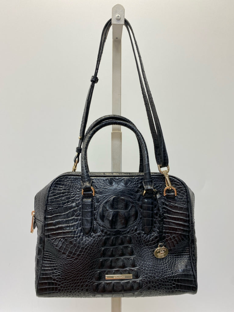 Brahmin Black Dark Gray Embossed Leather Handbag