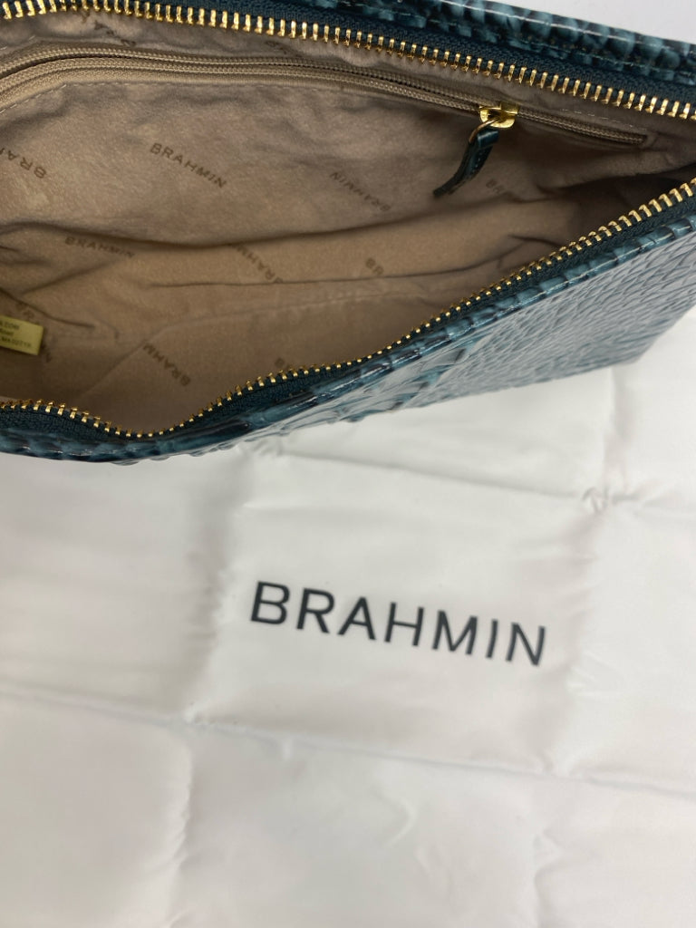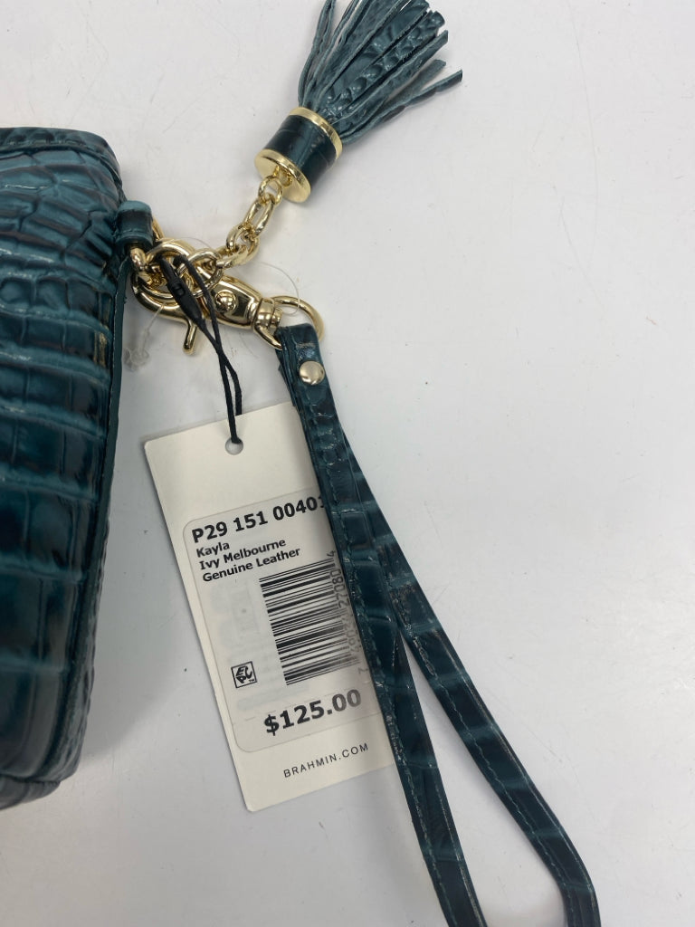 Brahmin Teal Green Embossed Leather Wristlet