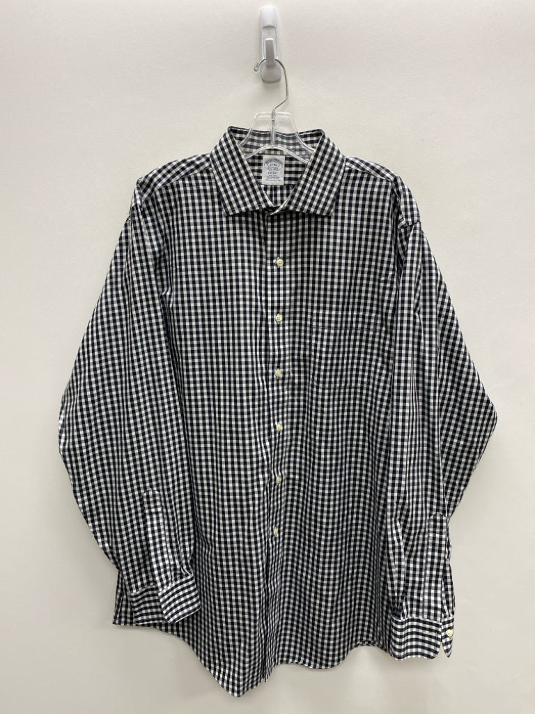 Brooks Brothers Size 17 White/Black Checkered Button Up Men's Long Sleeve Shirt